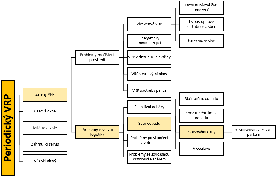 Přidání možnosti časových oken do periodického problému reverzní logistiky zaměřeného na svoz tuhého komunálního odpadu (TKO) znamená, že vozidla musí dodržovat specifikované časové intervaly pro sběr odpadu na jednotlivých místech. Tento rozšířený problém se soustředí nejen na optimalizaci tras a frekvence sběru, ale také na splnění časových požadavků na vyzvednutí odpadu v určitém čase, čímž se zvyšuje efektivita a přesnost celého logistického procesu.